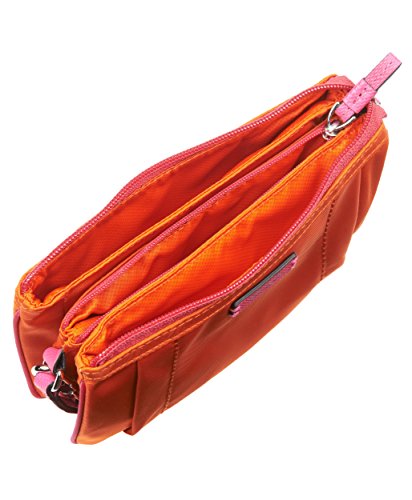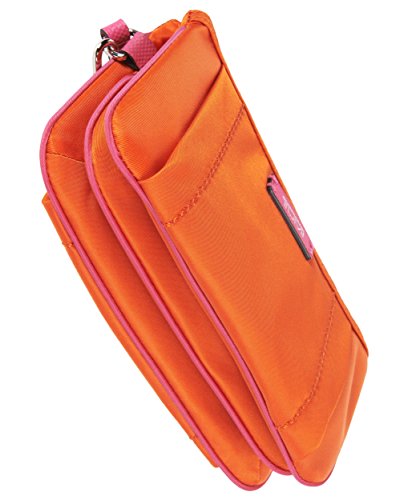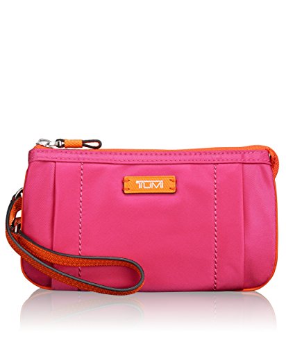 Keep all your valuables close at hand with this convenient and stylish wristlet design. The interior has a center zip compartment, plus two small and two large open compartments. Made from lightweight nylon, it features a top zip closure and leather wrist strapFeature