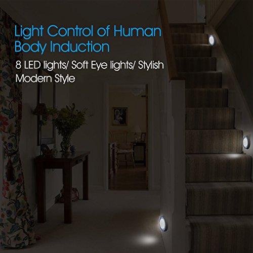 Motion Sensor Light NXET New Design Led Motion Detector Sensor Night Lights with 8 LEDs, Stick-anywhere Cordless Battery-Powered Closet Lights Stair Lights,...