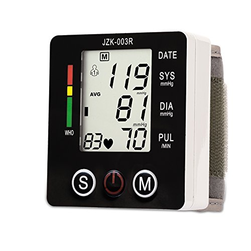 Wrist Type Home Automatic Digital Blood Pressure Monitor Electronic Sphygmomanometer Irregular Heartbeat Detector Large LCD display Automatic Shut Down Function with 99 Memories Recall-Black