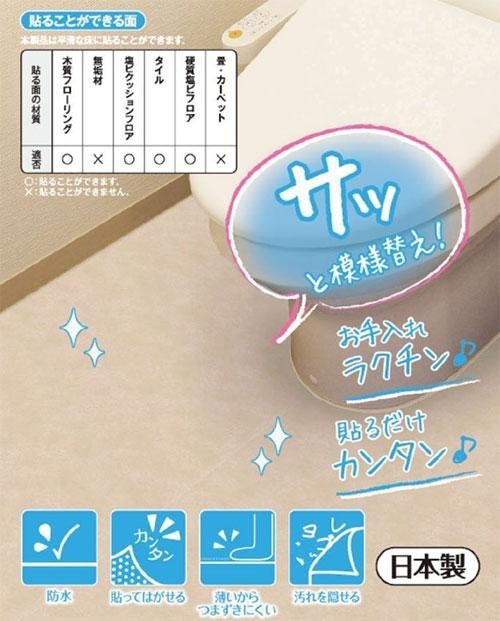 | トイレの床を簡単に模様替え♪簡単に貼れて、キレイにはがせます。4分割にカット済ですが、貼りやすい大きさにハサミでカットして使えます。 |