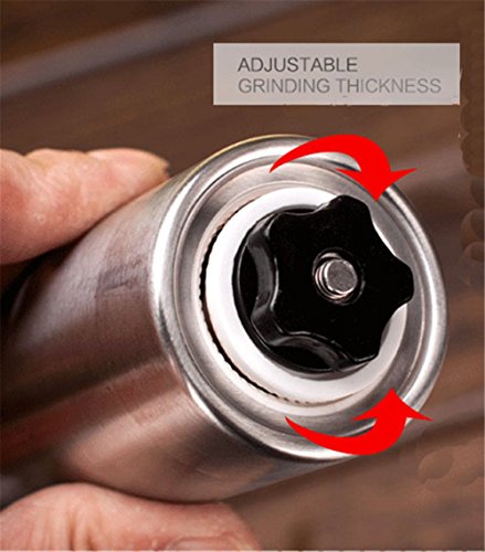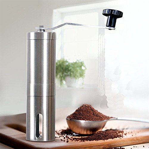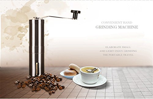 -. Feature : ADJUSTABLE GRIND SIZE: The coffee grinder adjusts quickly and easily to grind for multiple brewing methods such as: espresso, pour over, french press/plunger, percolator or Turkish. You'll be able to get a consistent grind quality that will improve the taste of your coffee. / ULTRA PORTABLE: The coffee grinder is designed specifically to be portable, making it easy to carry along for vacations, camping or hiking trips. This is truly the best coffee grinder for travelling. / EASY TO CLEAN: Manual coffee grinder can be disassembled into separate pieces allowing for efficient cleaning. / PREMIUM BUILD: This Coffee Bean Grinder is made of quality stainless steel which gives it a modern look, but most importantly increases its durability. / PERFECT FOR COFFEE LOVERS: If you're a coffee lover, you will love this coffee grinder. If it doesn't or you have some problem don't worry since we back your purchase with great no questions asked, customer service because we're serious about making sure you're pleased