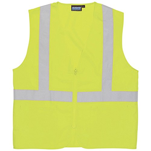 ERB 61710 S388Z Class 2 Zippered Solid Woven Safety Vest with Pockets, Lime, Medium
