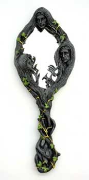 Power of Three Oval Hand Mirror Mother Maiden Crone Design