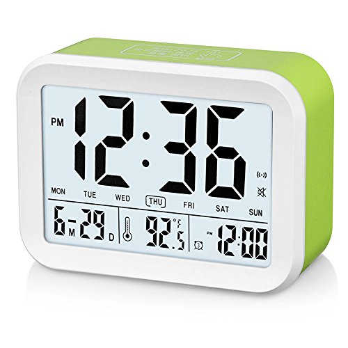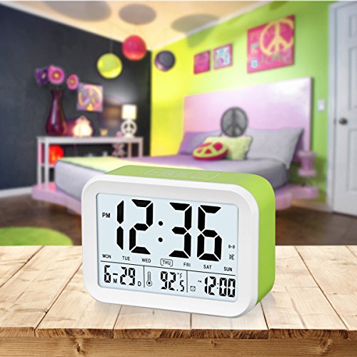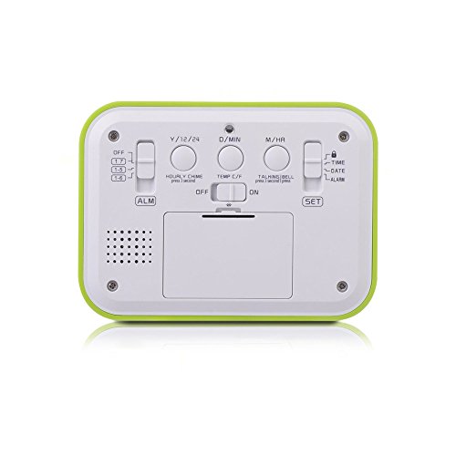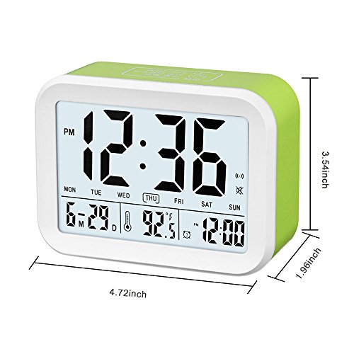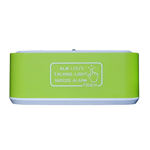 FAMICOZY Talking Alarm Clock with Smart Light and Snooze,7 Sounds to Choose,3 Alarms for 5/6/7 Days,Week Date Temperature,12/24hr Battery Operated Clock,Green