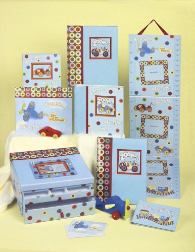 - Zoom-Zoom features race cars, trains, and planes in vibrant hues with dimensional and textural tip-ons
