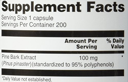 Supplies 100 mg of pine bark extract per 1-capsule serving. Contains 200 servings per bottle.