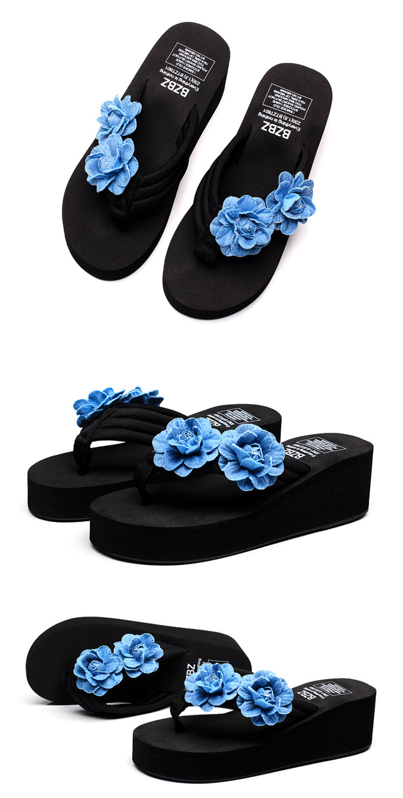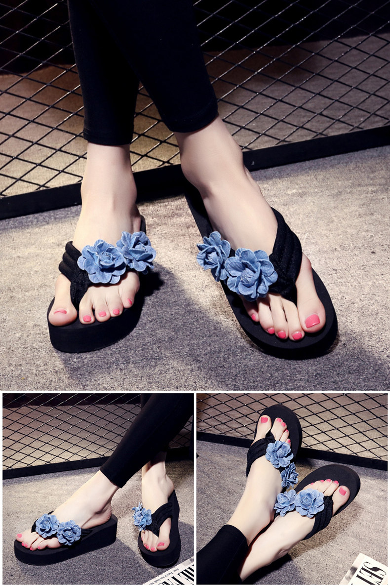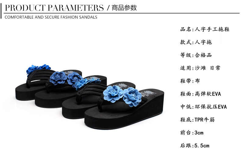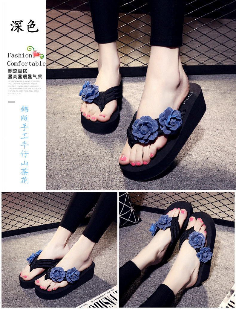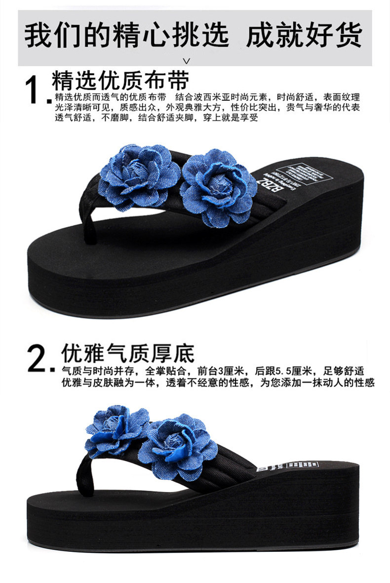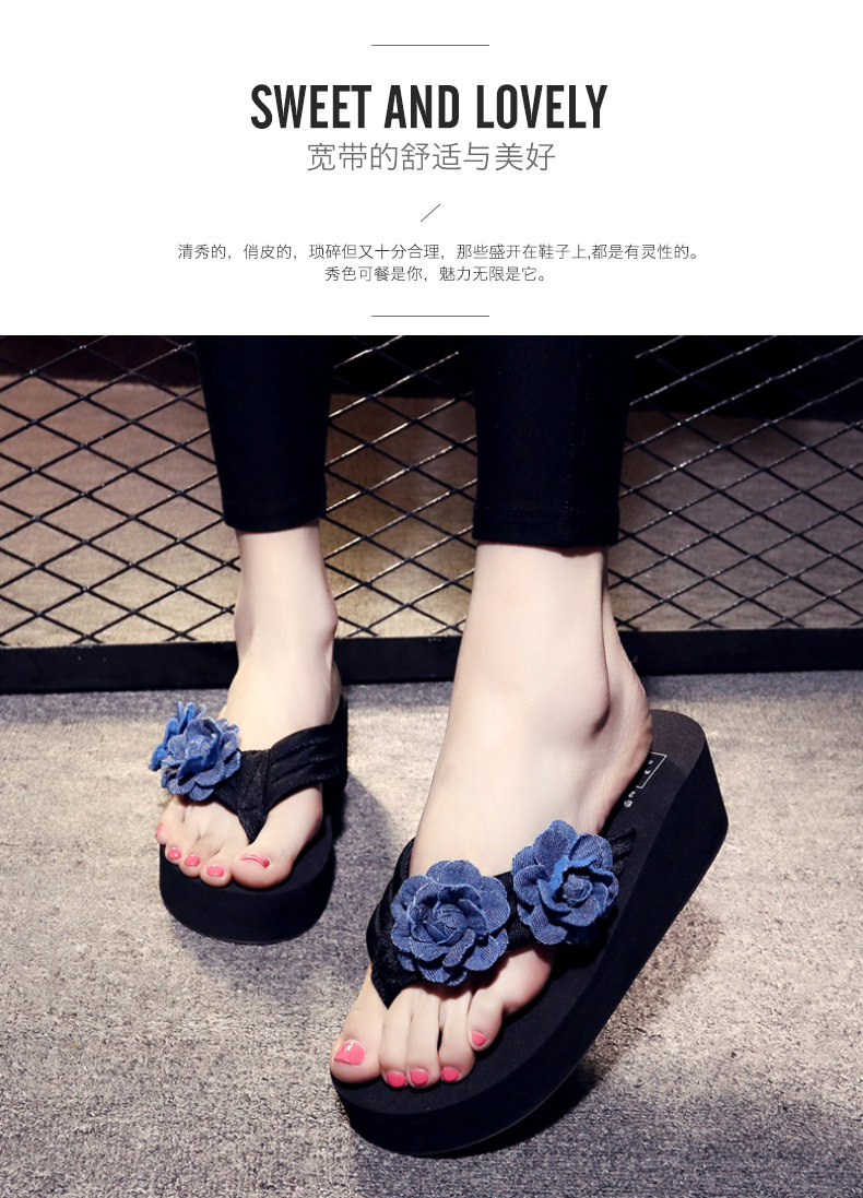 舒适布带夹脚沙滩鞋防滑坡跟厚底人字拖韩版时尚凉拖鞋女夏季