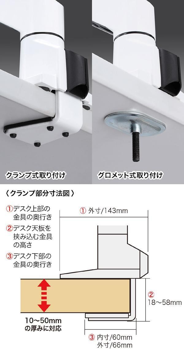 | 机上面を有効活用できる、水平垂直多関節液晶モニターアーム。 |