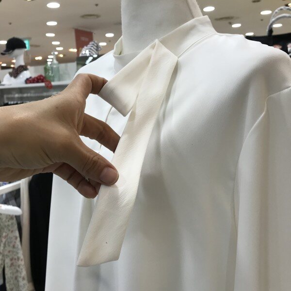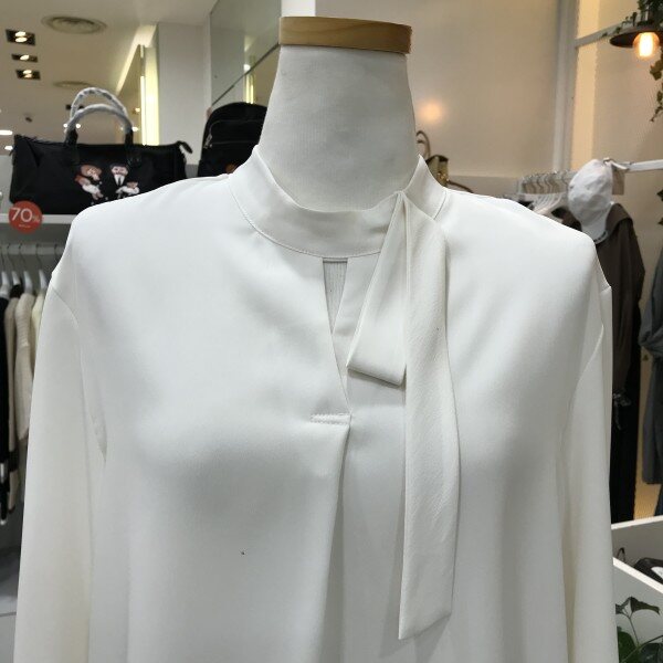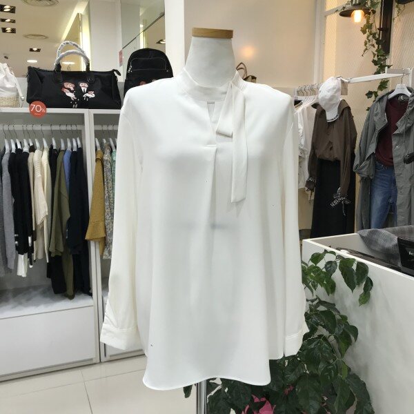 리본 반넥 블라우스입니다넥라인 트임과 리본 포인트로 고급스러우면서 우아한 느낌을 자아내는 블라우스입니다폴리소재로 착용감이 가볍고 관리가쉽답니다사이즈 FREE가슴둘레 51cm총장 67cm