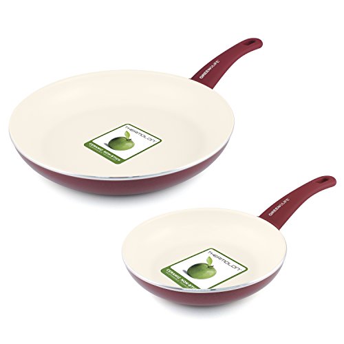 The GreenLife Soft Grip Ceramic Non-Stick 7" and 10" Open Frypan Set, Turquoise makes the perfect addition to any kitchen. The high performance Thermolon ceramic non-stick coating is long lasting and easy to clean, made without PFAS, PFOA, lead or cadmium. The turquoise aluminum reinforced body adds a touch of style to your kitchen, while the matching soft-grip handles provide much-needed comfort. The dishwasher-safe construction makes cleanup a breeze.Feature