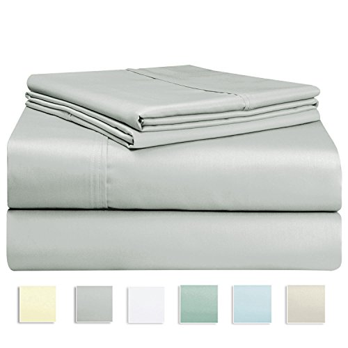 400 Thread Count Sheet Set, 100% Long-staple Cotton Silver Queen Sheets, Sateen Weave Bedsheets, Stylish 4-inch hem, upto 17 inch Deep Pocket by Pizuna Linens (100% Cotton Sheet Set Silver Queen)