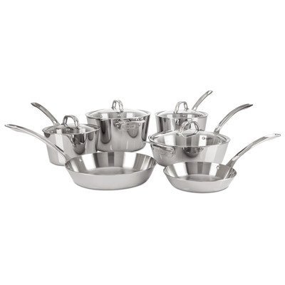 Viking Culinary Contemporary 3-Ply Stainless Steel Cookware matches form with function. Inspired by the Windsor pan shape, our cookware was designed to create a fashionable look while maximizing performance and efficiency. The conical sides are angled out to provide more surface area for evaporation, while the walls retain more heat resulting in faster cooking times. The vented glass lids allow you to monitor the cooking progress of your meal while reducing the chance of boil-overs. Additional features include unique sealed rims that completely encapsulate the aluminum layer inside the stainless steel. Internal volume markings in both US and metric units make measuring easy (except fry pans). All Viking Contemporary cookware combines a layer of aluminum sandwiched between heavy-gauge stainless steel. The aluminum core provides exceptional heat transfer throughout the cookware, while the magnetic stainless steel exterior makes it incredibly durable and safe for all cooktops, including induction. The Viking signature stay-cool handles are ergonomically designed for a secure grip, comfort and balance, while remaining cool to the touch. Oven, broiler and grill safe up to 600°F/315°C (oven safe up to 450°F/232°C with glass lid), dishwasher safe and features a manufacturer's limited lifetime warranty. The Viking Contemporary 3-Ply Stainless Steel Cookware 10 Piece Set includes a 5.2 quart Dutch oven with lid, a 3.6 quart sauté pan with lid, 2.4 quart and 3.4 quart saucepans with lids and 8 inch and 10 inch fry pans. Viking, designed to delivery Professional Performance for Your Home.Feature