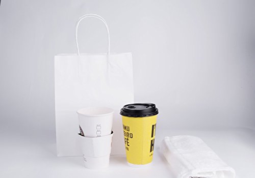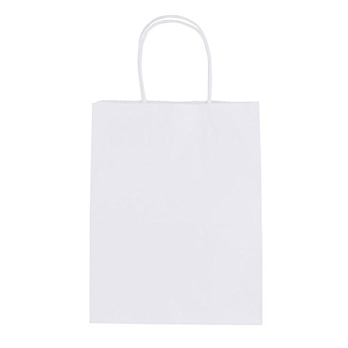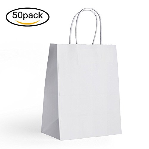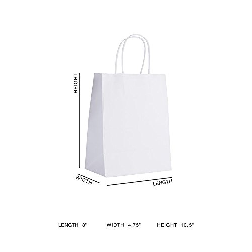 Halulu 50 Pcs 8"x4.75"x10.5" White Kraft Paper Bags,Handled, Shopping, Gift, Merchandise, Carry, Retail,Party Bags