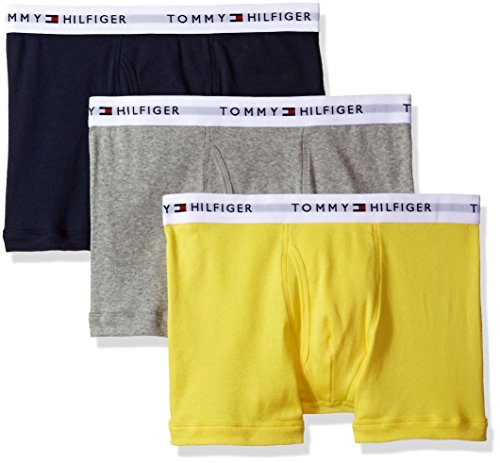 Tommy Hilfiger Men's Underwear 3 Pack Cotton Classics Trunks, Citron/Heather Grey/Black, Large