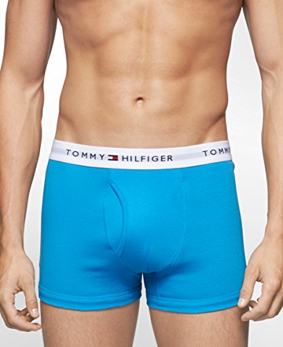 Tommy Hilfiger Men's Underwear 3 Pack Cotton Classics Trunks, Hazy Blue, Medium