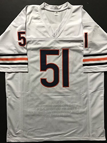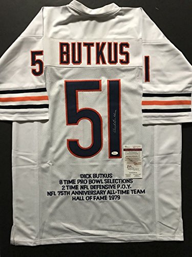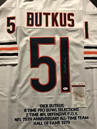 Autographed/Signed Dick Butkus Chicago Bears White Stat Football Jersey JSA COA