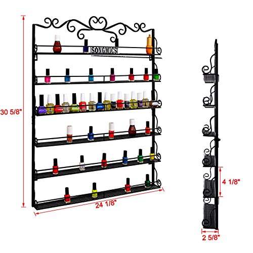 SONGMICS Metal Nail Polish Wall Mountable Organizer Display Rack 6 Tier Black UJNP62H