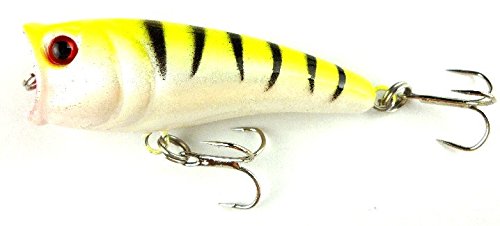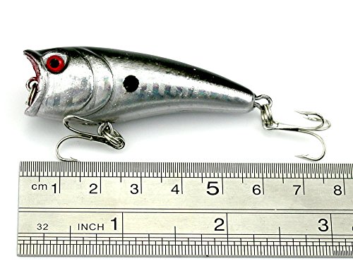 -. Feature : Designed to provoke surface strikes with a water-pushing, popping action / proven action, tremendous finish, concave head, compact profile, and quality components / Hook: #8 high carbon steel treble hook / Package include: 10 PCS popper lures / Each popper lure weight:7g/6cm