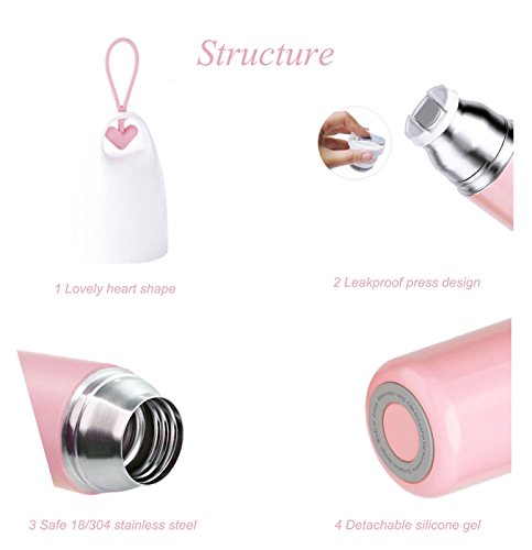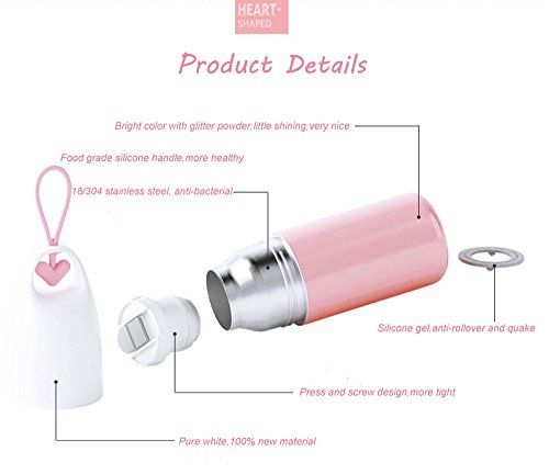- NEW LOVElY DESIGN:Mixed SHINY LITTLE in lower Bottle Body and PURE WHITE Color for upper Themos Body,No any Impurities .Four Colors for Boys and Girls to Chooe.Silicone Handle with Warm Heart is a light Characteristic.Soft ,Warm Heart and Very Nice.
