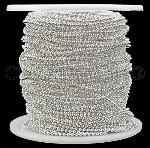 CleverDelights Ball Chain Spool - 100 Feet - 1.5mm Ball (Small) - Shiny Silver Color - Bulk Roll