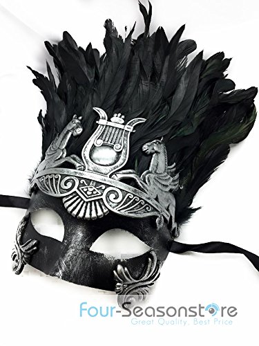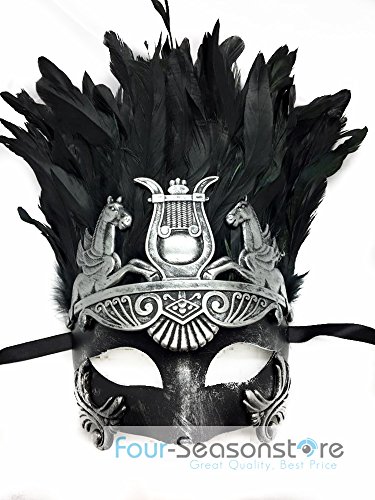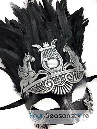 -. Title : NEW Mens Mythological Silver/black Hercules with Feather Greek Style Party Mask Mens Mythological Greek Style Party Mask Mardi Gras Majestic Party Halloween Ball Prom by BK