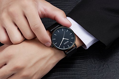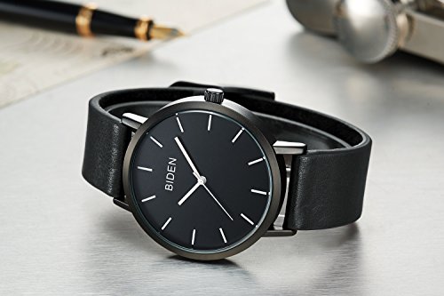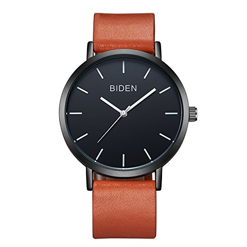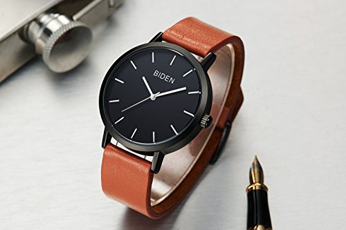 -. Feature : WATERPROOF for 30M: Stainless steel durable waterproof case cover, Hand Wash, Rain Day, Sweating, NO Problem.In general, withstands splashes or brief immersion in water, but not suitable for swimming. (Please DONOT PULL OUT the button under water ) Perfect for all kind of business, casual, indoor activities or daily use. / GENUINE LEATHER BAND: High quality genuine leather watGENUINE LEATHER BAND: High quality genuine leather watch band, soft, durable and comfort, Buckle Clasp make you adjust the band easily. / SIMPLE CASUAL DESIGN: Simple and elegant style, A perfect gift for any gift giv2.SIMPLE CASUAL DESIGN: Simple and elegant style, A perfect gift for any gift giving occasion: anniversary, business gift, birthday,Anniversary,Thanksgiving Day etc. / SERVICE: Any question about the product , pls contact BIDEN FASHION,we will try our best to help to solve your problem / PRECISE TIME KEEPING:High quaPRECISE TIME KEEPING:High quality quartz movement with analog display provide precise and accurate time keeping .