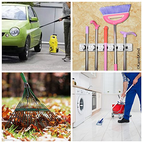 -. Title : Broom Holder - Wall Mount Tool Organizer Rack - 5 Slots with Automatic Handle Grips - Perfect for Brooms, Mops, Dusters, Rakes, Shovels, etc.