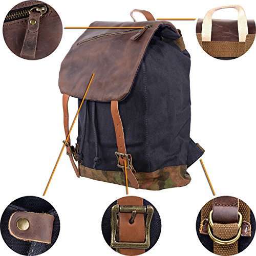 -. Title : Vokul® Vintage Men's Casual Canvas Leather Backpack Rucksack Hiking Backpack