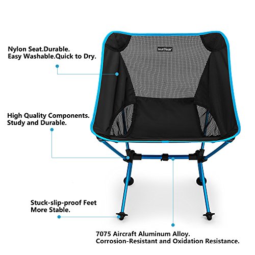 0utdoor traveling needs to pack light. Our foldable chair is super-light and collapses into a small bag. It is easy to take on every trip and any outdoor activities. Not only that, it is the perfect blend between portable, durability and comfort. With a frame constructed from aircraft-grade 7075 aluminum (one of the highest strength aluminum alloys) and large seats made of outdoor quality oxford, our camping chairs are stronger in regards to bearing capacity and convenient.