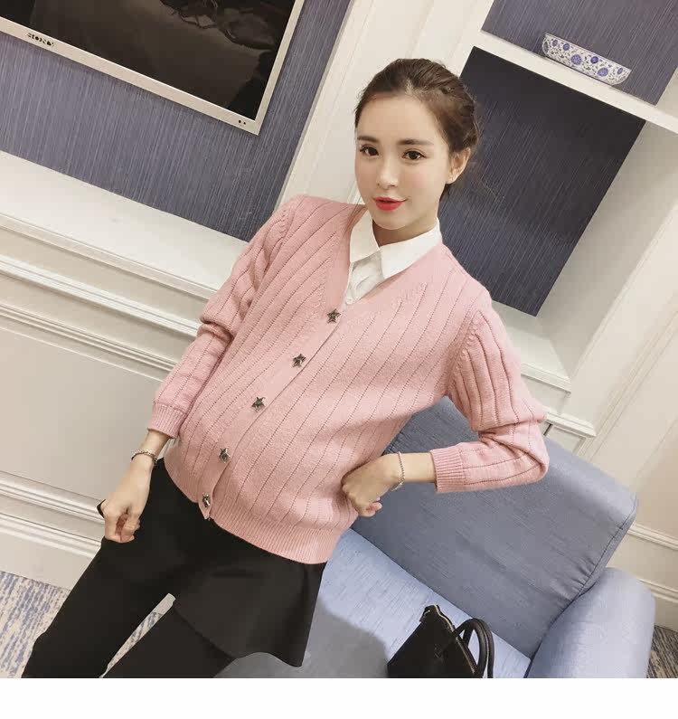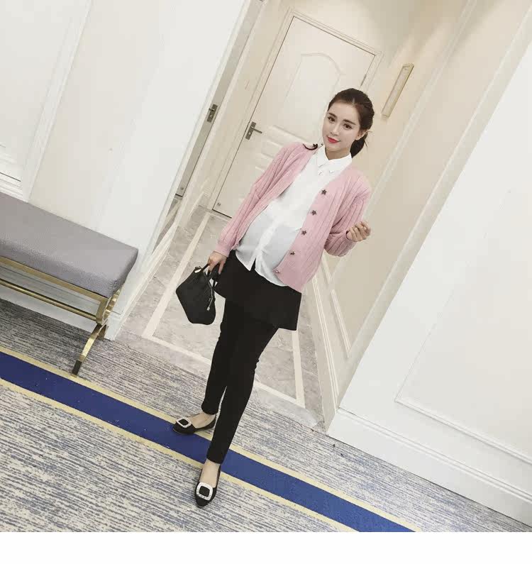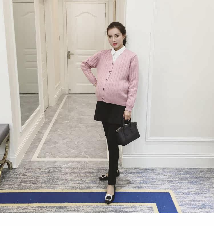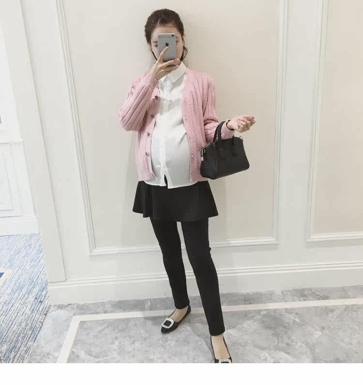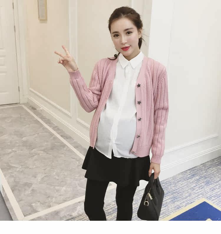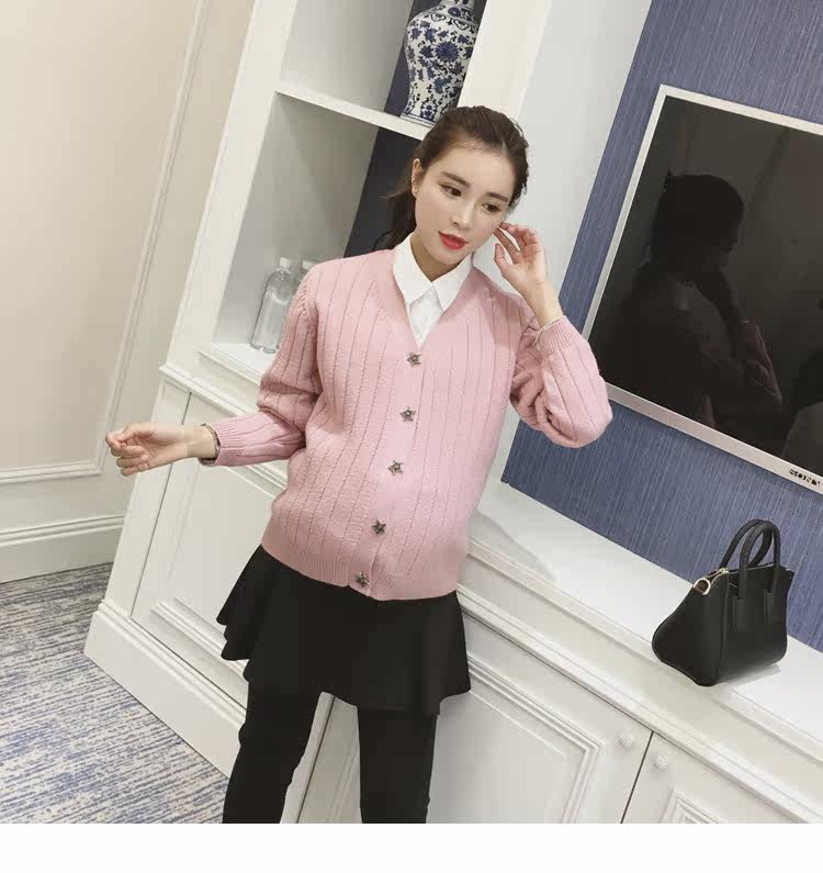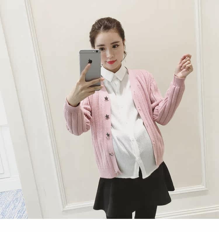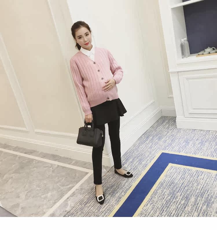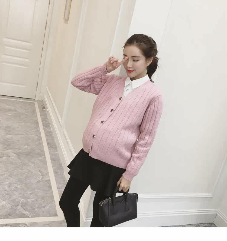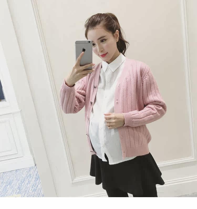 孕妇毛衣外套女长袖春季纯色v领针织衫开衫外搭韩版新款孕妇装潮