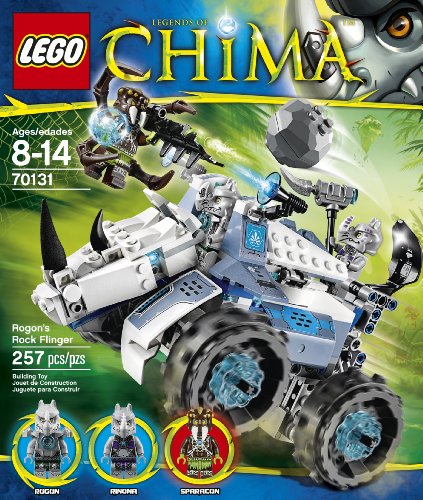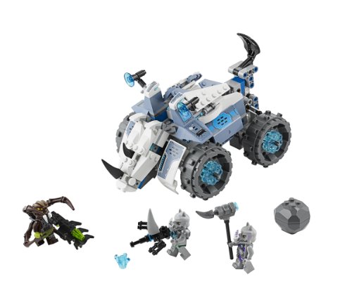 -. Feature : Includes 3 minifigures: Rogon, Rinona and Sparacon; Weapons include a 5-barreled CHI Boulder Boomer, CHI Hammer Horn and Spider Carapace blaster / Features attack and pursuit modes, big all-terrain wheels, rhino horn detailing, omnidirectional translucent sonic blasters and translucent elements / Activate the catapult and rock for attack mode! Hurl the enormous rock at Sparacon! / Push the tail of the vehicle down for high-speed pursuit mode! Regain the Rhino tribe's stolen CHI! / Measures over 5" (13cm) high, 7" (20cm) long and 4" (12cm) wide