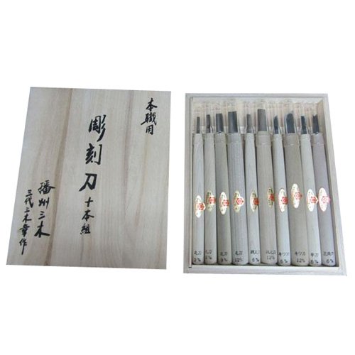 -. Title : 三木章刃物 彫刻刀 桐箱入 10本組 140050