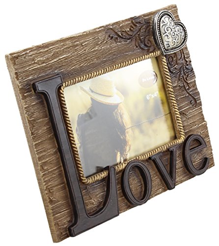 High quality, durable poly resin "Love" picture frame with glass insert. Beautiful scroll details with faux silver heart. Realistic detail!!! Designed for vertical 4" x 6" photos.