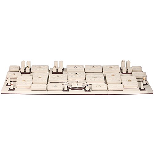 -. Feature : Holds up to 168 rings / Stage pieces to create your own look to fit your display needs / Made of wood board and lined with beige leatherette / Overall Dimensions: 48 1/2"W x 17"D x 5"H / Accessories are not included