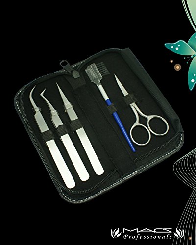 The Professional Eye Brow Kit Contain , one Eye Brow Scissors And one Eye Brow Shaper with Comb ,And Three Eye Brow And Extension Tweezers , with Leather Kit All Implements Made Of Stainless SteelFeature