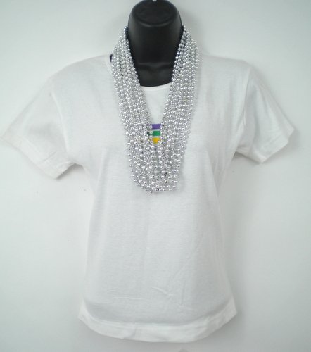 33 inch 07mm Round Metallic Silver Mardi Gras Beads - 6 Dozen (72 necklaces)