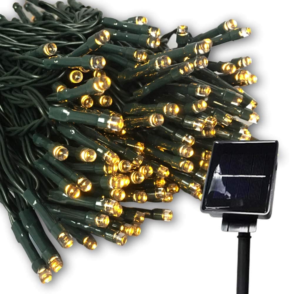 色:イエロー LED数:300球 LED間隔:約10cm 連結不可 ソーラー充電式 全長:約28m ソーラーパネルからLED間:約2m コードの色:ダークグリーン ソーラーパネルの大きさ:8.5×7.3×2.4(cm) 支柱:22cm フル点灯時間:約6時間 フル充電時間:約6時間 点灯パターン:8パターン 電池:ニッケル水素電池 バッテリー:1.2V/1200mA