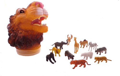 -. Title : WeGlow International Lion Carry Along Toy Case with 12 Wild Animals