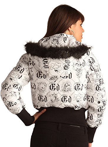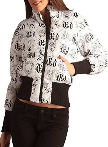 The Ed Hardy Womens Logo Puffer Jacket is a very warm and plush down puffer jacket that will really keep you warm and stylish during the cold winter time. It features the Ed Hardy Logo print. It also features front zipper closure, removable hood with snaps and two side zipper pockets. Signature Hardware. This Ed Hardy Jacket is a must to have to your winter wardrobe!Feature