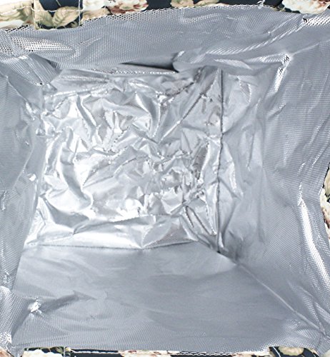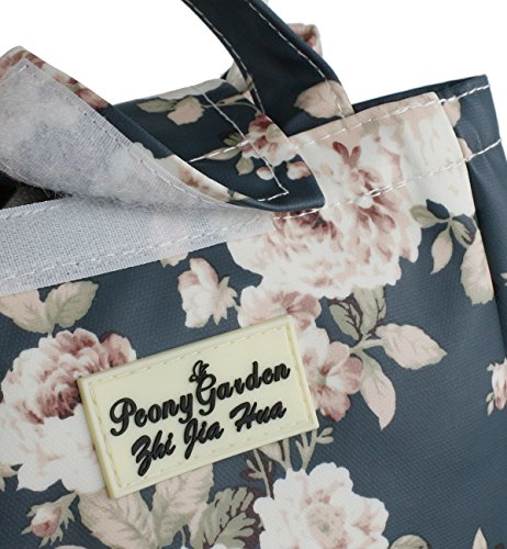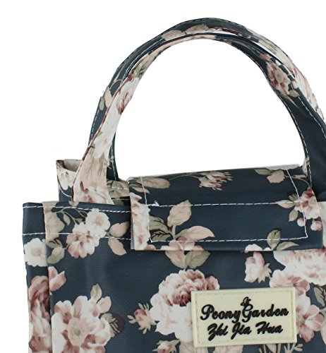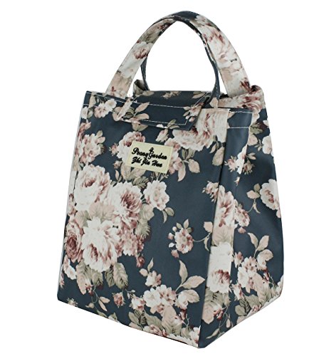 Violet Mist Reuseable Cute Cotton Lunch Bag Well Insulated Lunch Box Tote Waterproof Aluminum Film Cooler Bag (Flower-H)