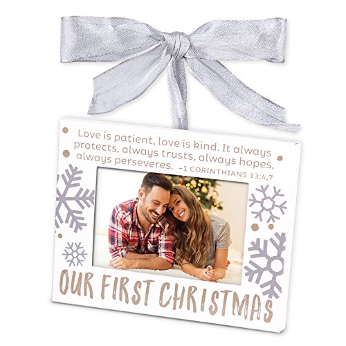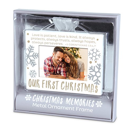 Lighthouse Christian Products Our First Christmas Metal Ornament Frame, White