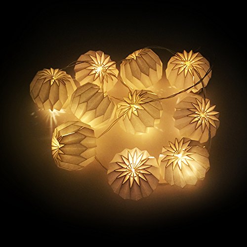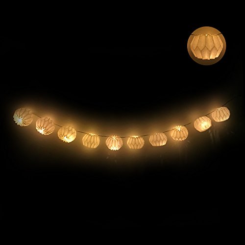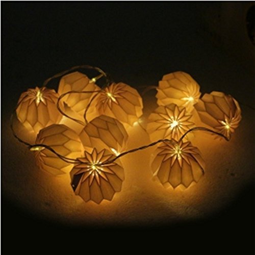 BOSHENG DIY White Diamond Shaped Origami Paper Lantern String Light, 5.5 FT