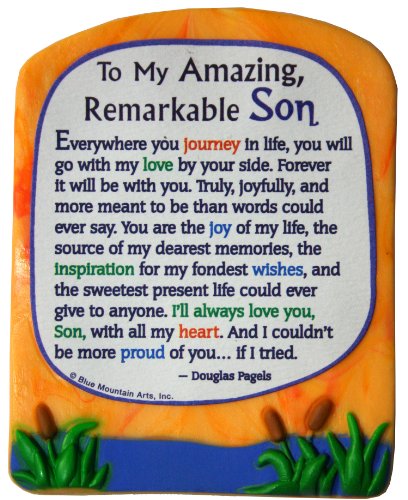 - Blue Mountain Arts Sculpted Resin Magnet, To My Amazing Remarkable Son by Douglas Pagels; magnet measures 2-7/8 x 3-3/4 inches