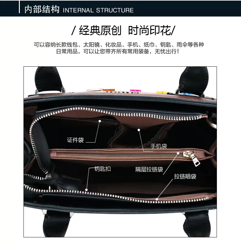 Internal Structure: zipper pocket cell phone pocket document bag