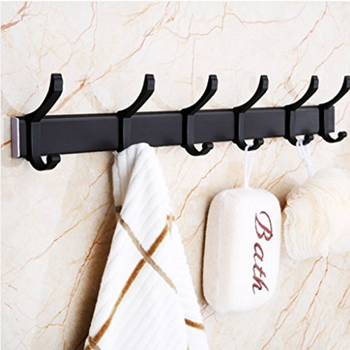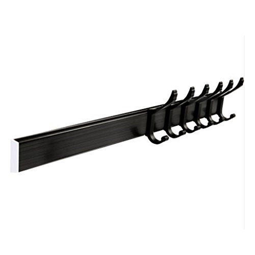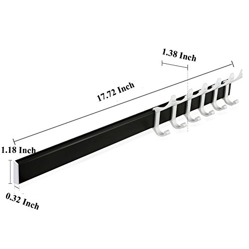 DIRUISHEN Removable Coat Hook Rack Wall Mounted Hook Rail Coat Hanger,Space Aluminum, 6 Hooks, 18 Inch for Hanging Clothes Cap Hat Belt Key Towel (6 Hooks,Black)