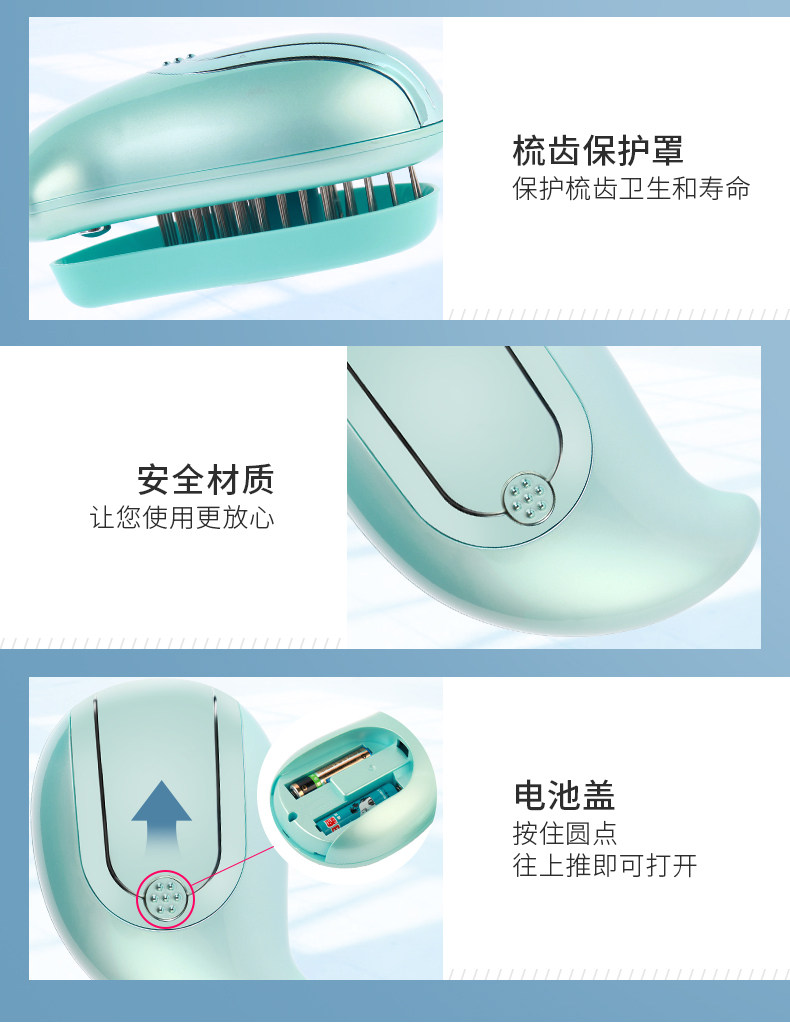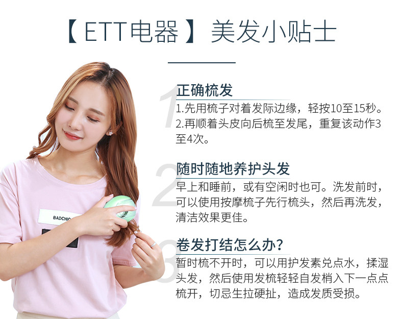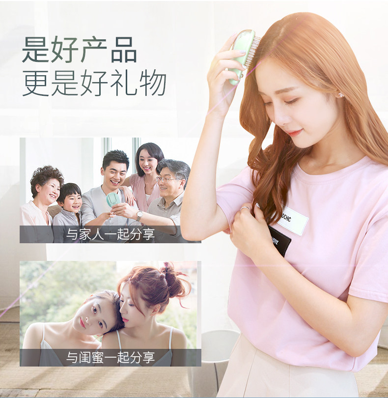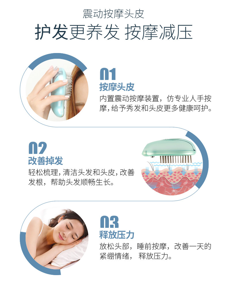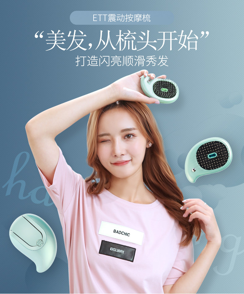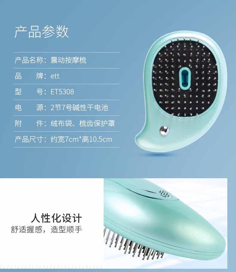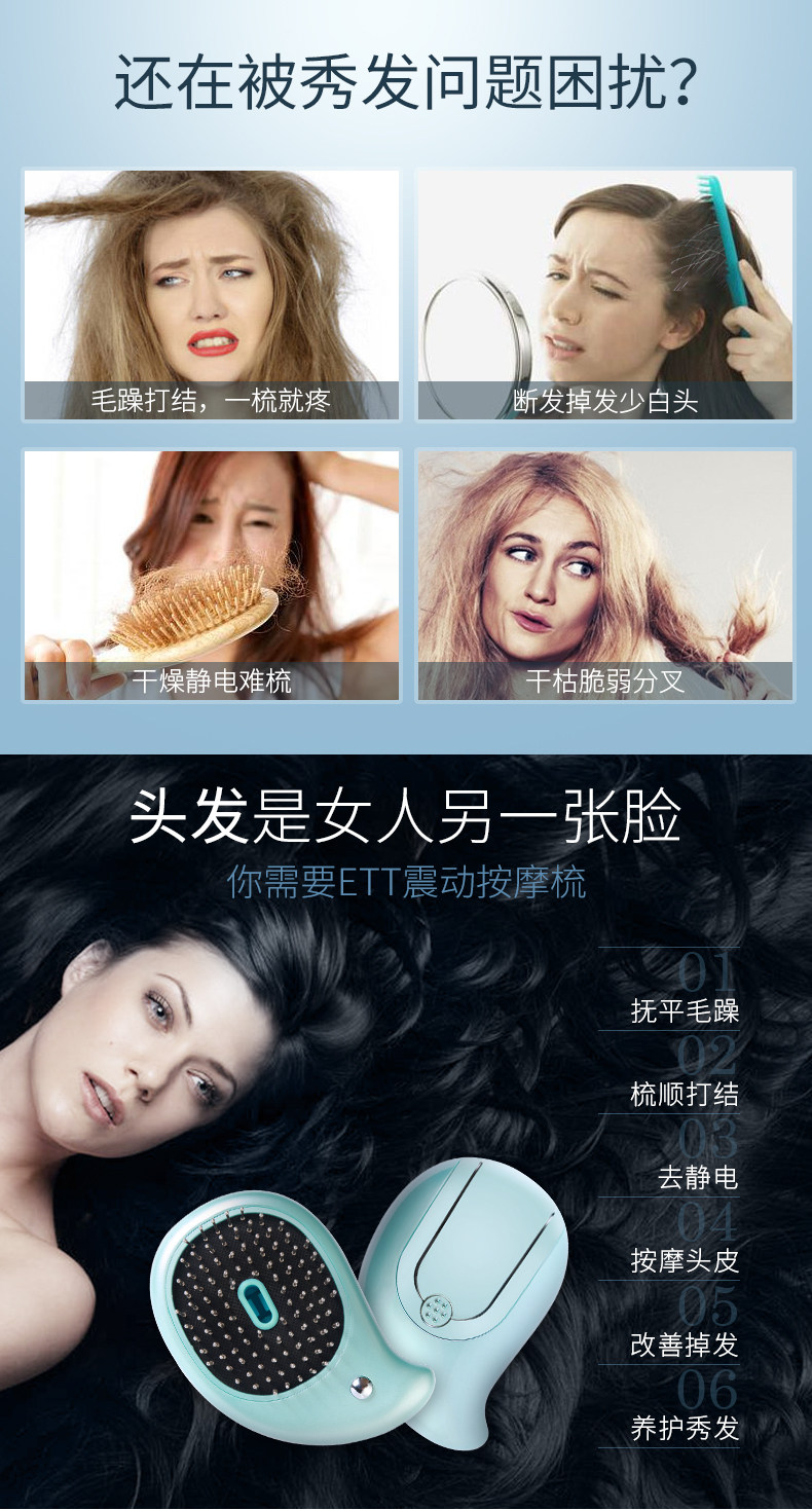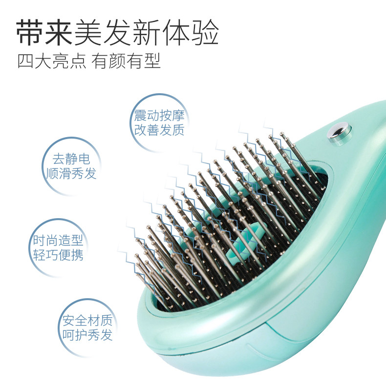 ETT震动按摩梳直发器多功能电动防静电护发头部按摩梳子