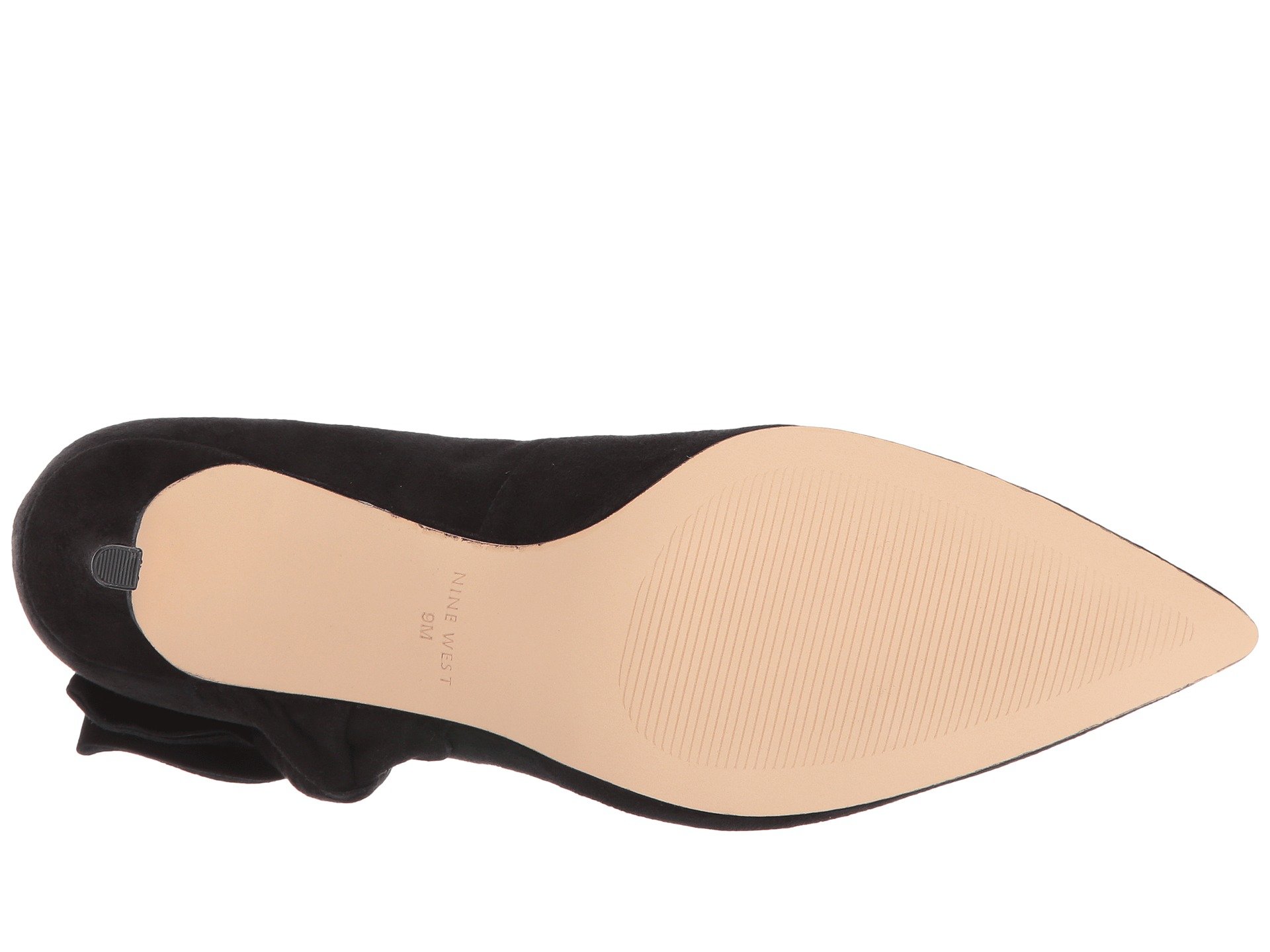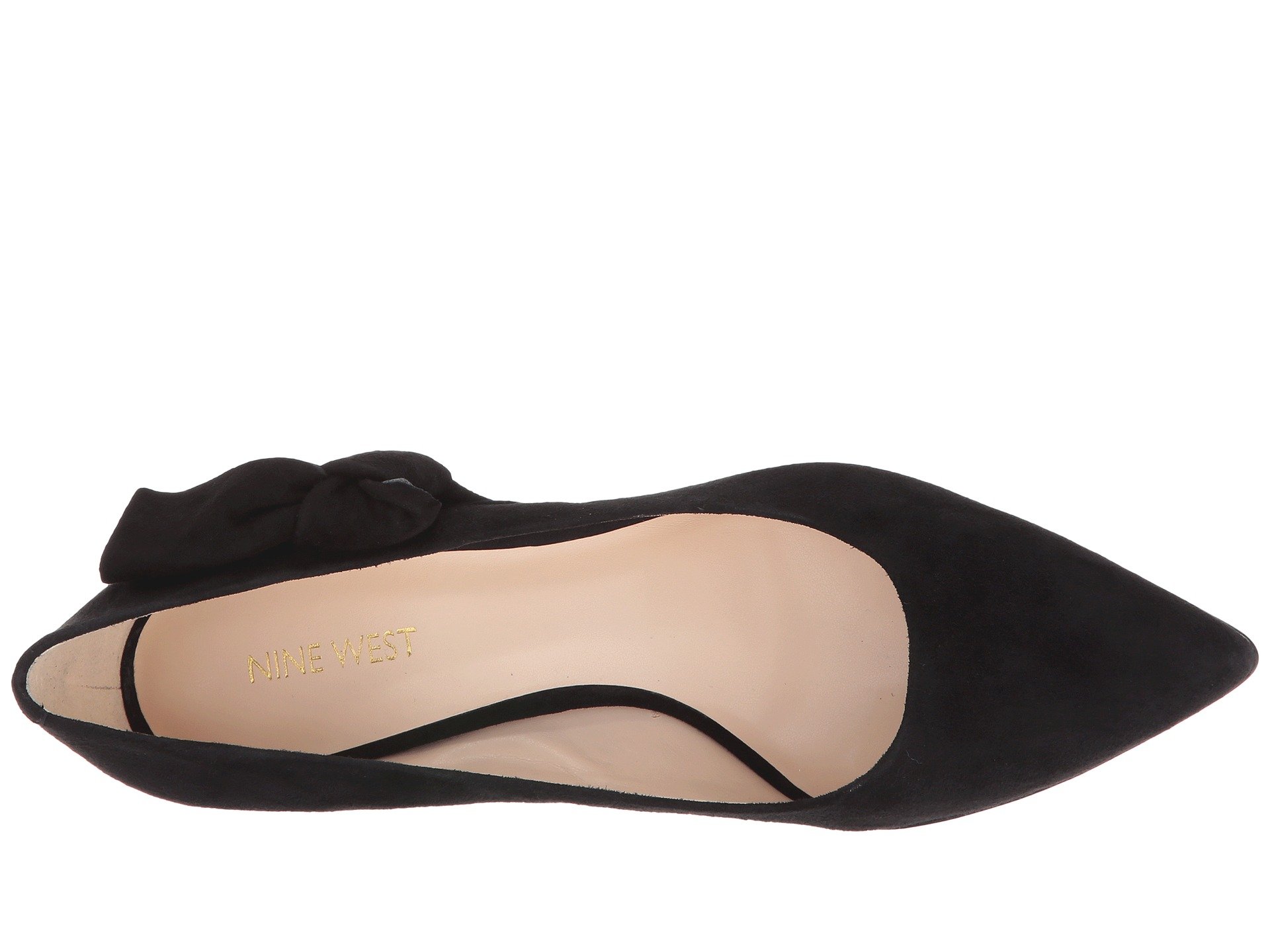 | Product Information SKU: #8780495Bring a modern elegance to your ensemble in the Nine West? Melliah pump.Suede upper.Slip-on design.Pointed-toe silhouette.Bow accent at side.Man-made lining.Padded footbed.Wrapped heel.Man-made sole.Imported.Product measurements were taken using size 9, width M. Please note that measurements may vary by size.Weight of footwear is based on a single item, not a pair.Measurements: Heel Height: 3 in Weight: 9 oz |