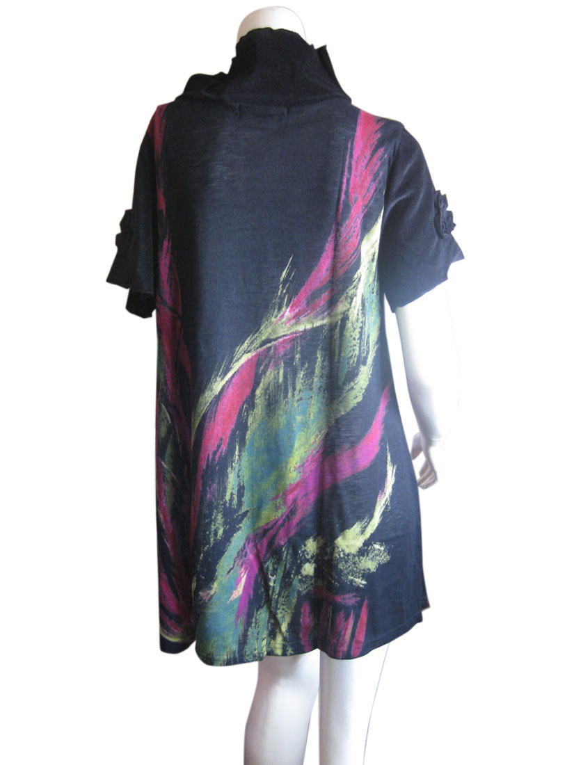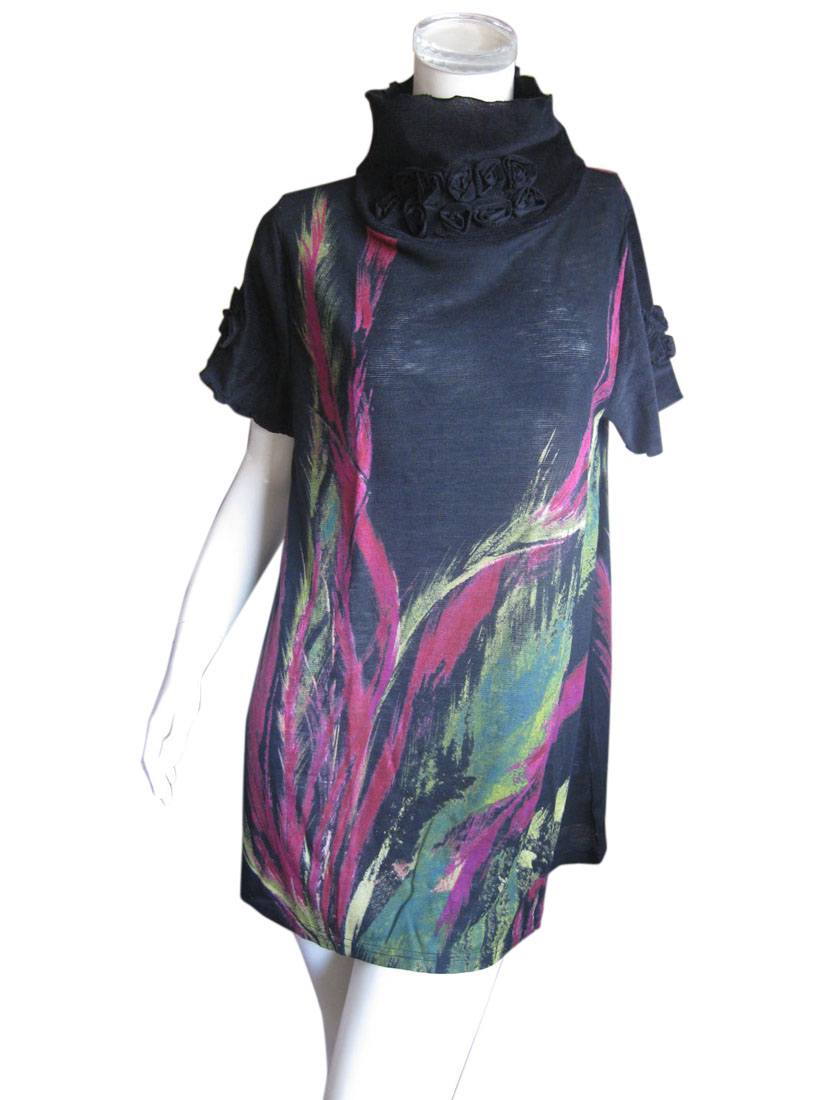 チュニック ルーター ウール 重ね着 ハイネック 春秋 ローズデコ バラ 薔薇
