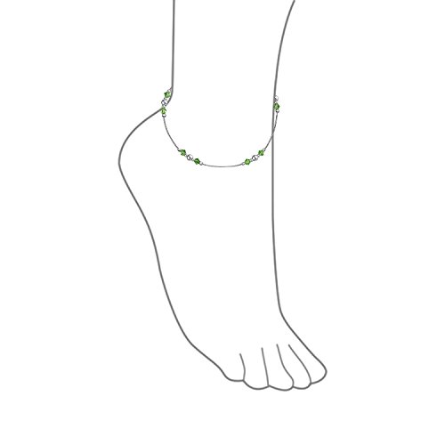August born babes, we found the perfect ankle bracelet for you to rock during your oh so hot birth month. This stunning sterling silver jewelry is made with shining metal that makes up a sleek snake chain. The chain of our anklet is Deco Style rated with groups of polished silver orbs and bright green Simulated Peridot colored crystals that makes it the perfect August birthstone jewelry. At only 3 grams in weight, our pretty piece can be worn all day, and the 9 inch chain comes with a one inch extender for a perfect fit that connects with a traditional lobster clasp. Whether you are a lover of green or thinking of getting this cute crystal jewelry as the perfect August birthday gift, grab one now.Feature