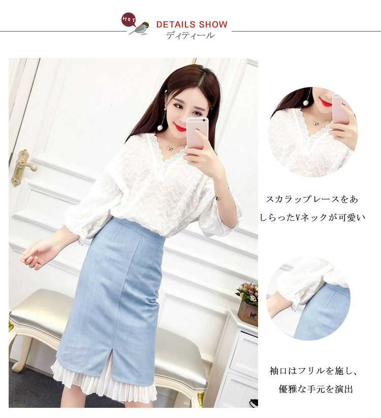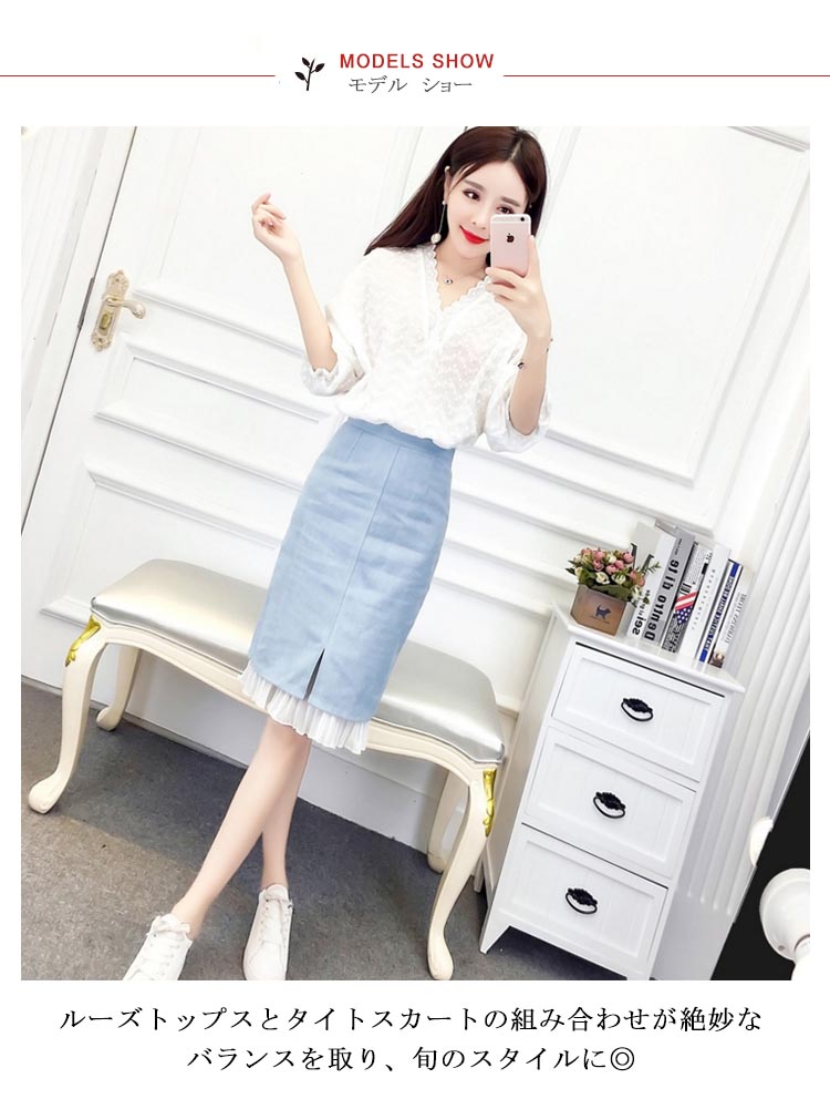 | 絶妙なバランスに一目惚れルーズトップスとタイトスカートの組み合わせが絶妙なバランスを取り、旬のスタイルに◎レースをあしらったざっくりVネックとドルマンスリーブが大人っぽいハイウエストデザインが足長効果抜群で、美しいシルエットを演出デイリーは勿論、デートやちょっとお出かけも大人気のヘビロテアイテムです | |